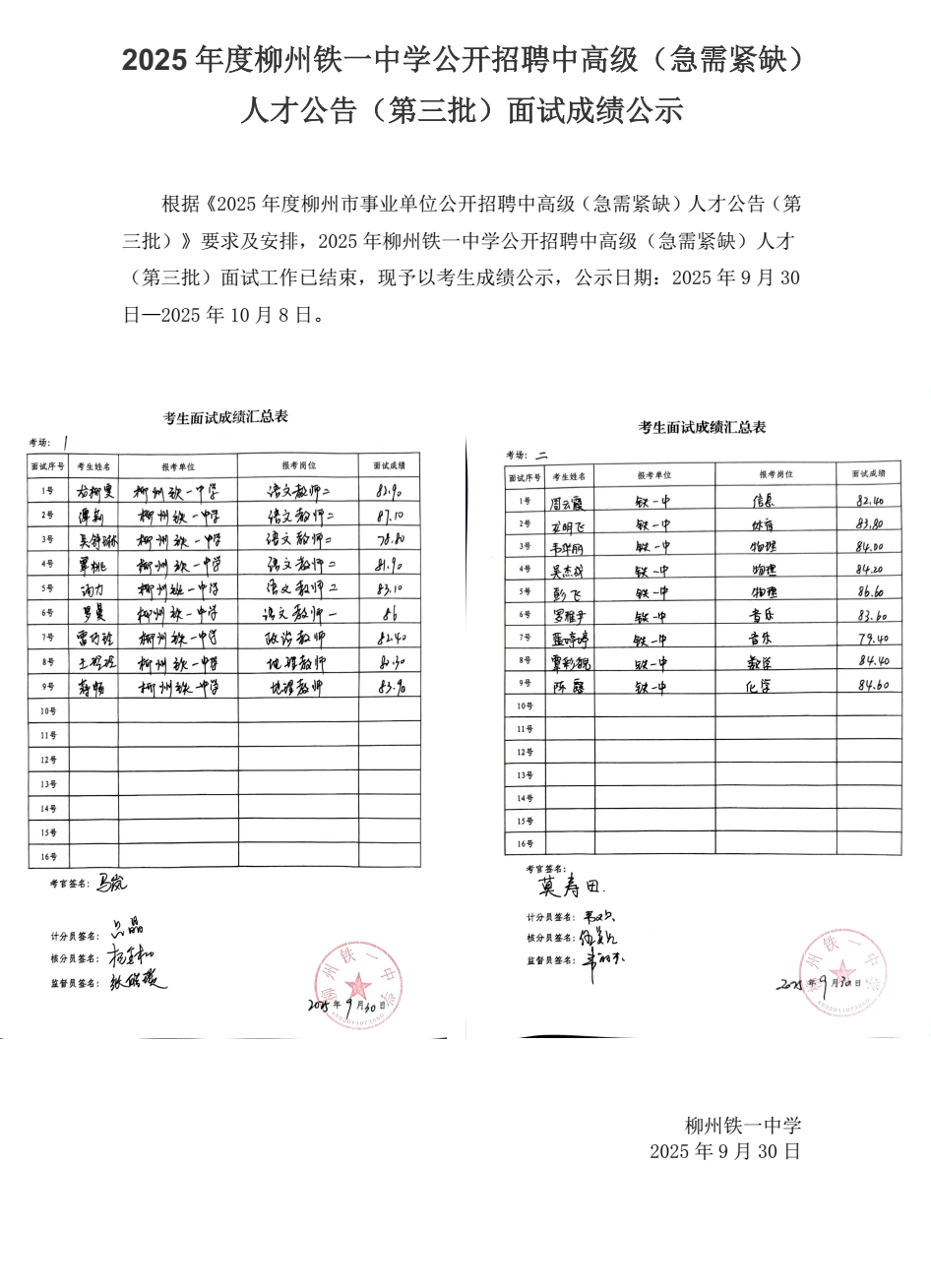 2025年度柳州铁一中学公开招聘中高级 (急需紧缺)人才公告(第三批)面试成绩公示 来源: 发布时间:2025-09-30 16:25:53 浏览次数: 次 【字体:小 大】 终审:TyzxAdmin 分享到: 【打印正文】